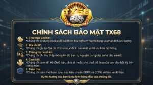 Văn bản Chính sách bảo mật này giải thích cách chúng tôi bảo vệ bạn. Việc thu thập và xử lý dữ liệu được thực hiện vô cùng minh bạch. Khi tham gia cá cược Tài xỉu, quyền riêng tư của bạn là số 1. Nền tảng TX68 cam kết tuân thủ các đạo luật bảo mật quốc tế. Hãy đọc kỹ các điều khoản dưới đây để an tâm trải nghiệm.